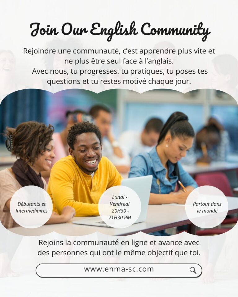 Apprenez l’anglais à votre rythme de A à Z. Rejoignez la communauté pour apprendre et évoluer ensemble.
